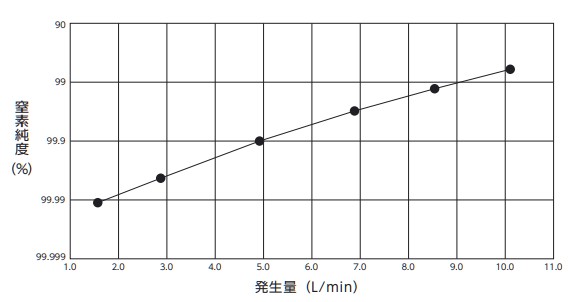 | 窒素発生量と純度 | 4 L/min (99.9 %) ~ 8 L/min (99 %) |