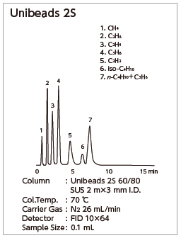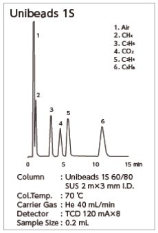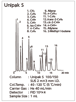 Unipak Sは球状シリカゲルベースでエタン、エチレン、アセチレンの分離、また昇温分析により炭素数の高い炭化水素ガスも分析できます。