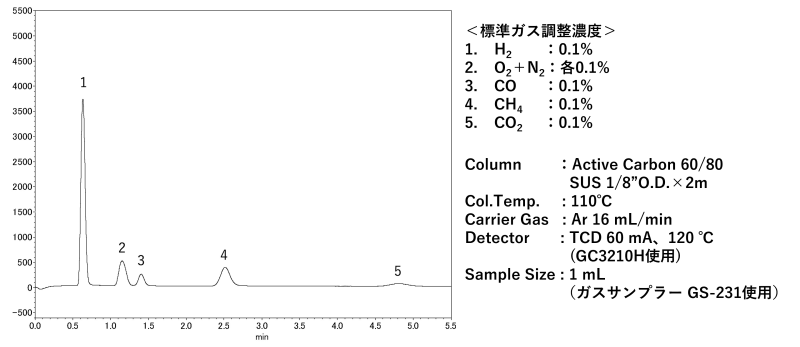 Active Carbon(活性炭)は非常に大きな比表面積を有しており、物理吸着(ファンデルワールス力)を利用してガス成分を選択的に保持します。恒温分析においては、H₂からCO、CO₂まで分析可能ですが、O₂とN₂は分離しません。
