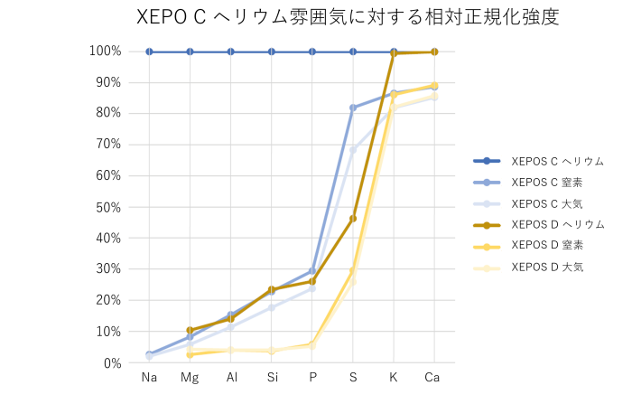 図1:ヘリウムパージ時のSPECTRO XEPOS C正規化強度とその他条件での強度比較
