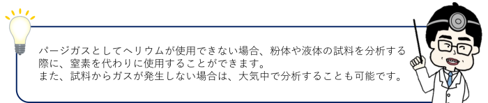 エネルギー分散型蛍光X線分析装置の多くのアプリケーションでは、窒素をパージガスとして代用し装置を操作することが可能です。また、分析性能に多少の妥協はあっても、大気雰囲気で分析を行うこともできます。