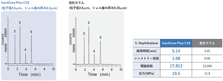InertCore Plus C18は、非常に優れた性能を持ったコアシェル(表面多孔質型)カラムです。