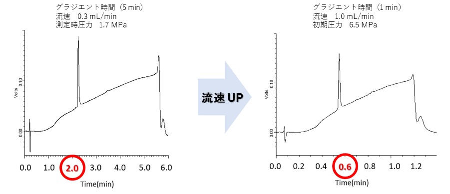 シリカモノリスを採用したことにより、「高保持・低圧力」を実現し、抗体のような大きなタンパク質の分析でもシャープなピーク検出を可能にします。