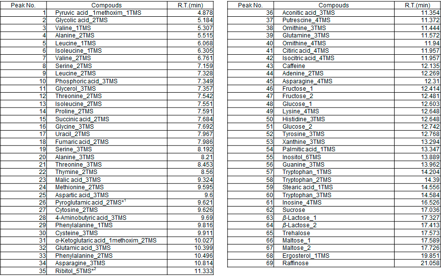 *2: Ribitolは本混合試料には含まれておりません。内標準物質として別に添加しています。