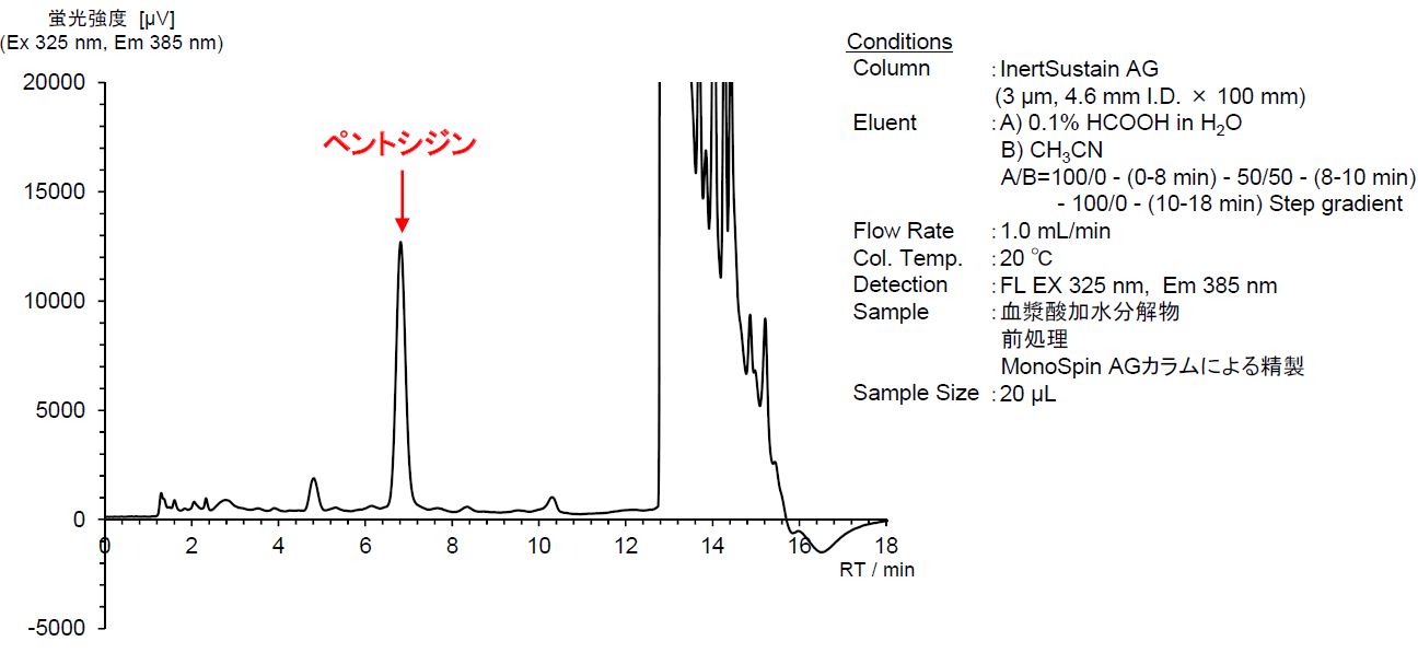 分析例 <血漿中ペントシジンのクロマトグラム>