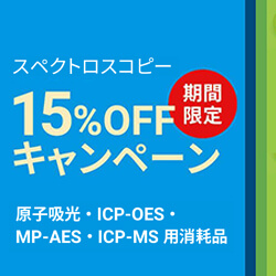 期間 3月1日(火) ~ 4月28日(木)Agilent スペクトロスコピー消耗品 期間限定15%OFFキャンペーンAgilent社のキャンペーン対象アジレント原子吸光・ICP-OES・MP-AES・ICP-MS 用消耗品をお買い上げいただけますと、キャンペーン期間中何度でも定価より15%OFF でご提供いたします。この機会にぜひご購入をご検討ください。 -