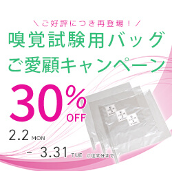 期間 2月2日(月) ~ 3月31日(火)嗅覚測定用バッグご愛顧キャンペーン多くのユーザー様からご好評をいただいている公益社団法人 におい・かおり環境協会 器材推奨マーク取得の嗅覚試験用におい袋が、今ならキャンペーン特別価格で 30%OFF!