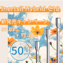 期間 9月3日(水) ~ 11月28日(金)Inertsil Hybrid-C18 新発売キャンペーン不活性の限界を超えた新しいシリカゲル(全架橋型ハイブリッドシリカゲル)を使用したC18カラムが誕生!